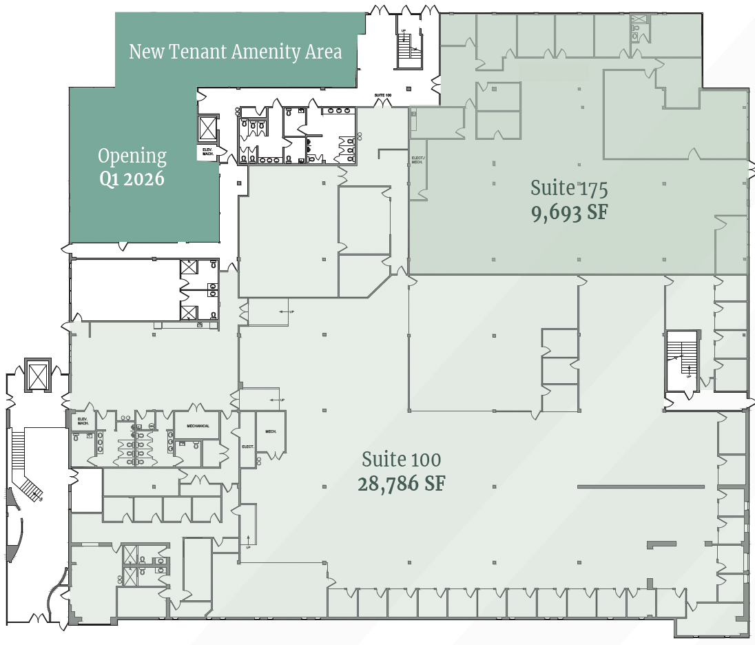 New tenant amenity hub with tenant lounge, conference rooms, training room and yoga studio